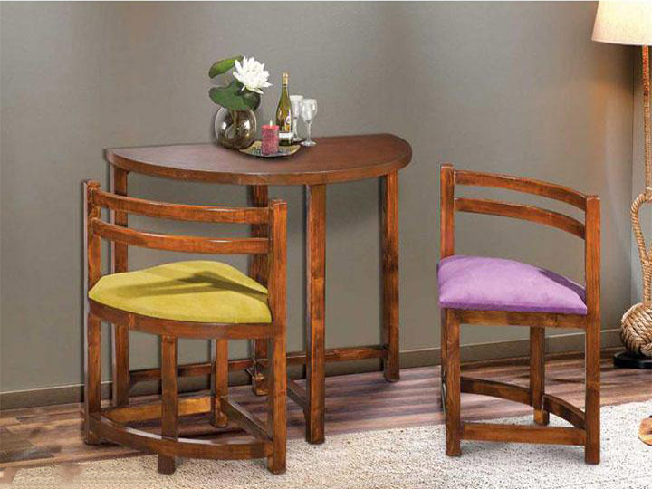 این نوع میز برای خانه های کوچک مناسب است. میز های کم جا جنس و انواع مختلفی دارد که می شود با توجه به دکوراسیون منزل ان را سفارش داد. گاهی اقات از میزهای کم جا برای آشپزخانه نیز استفاده می کنند. در آشپزخانه های بزرگ بهتر است از میز چهار نفره شیشه ای کم جا استفاده کنید. یکی ازدلایل آن زیبایی آن و دلیل دیگر آن این است که مجبور نباشید در سه وعده ار میز ناهار خوری بزرگ خود استفاده کنید.
